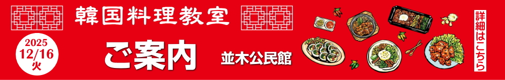 | 5.女宣教会主催『韓国料理教室』が12/16(火)11:00から並木公民館で行わます。 |